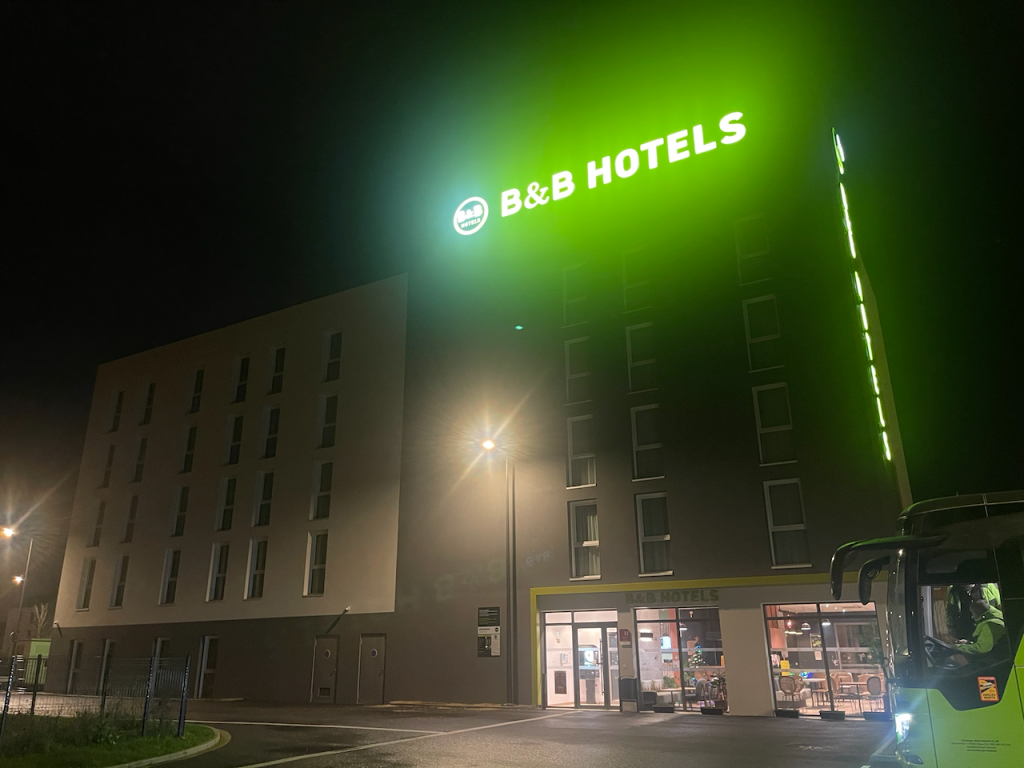 Op zaterdag reden we rond een uur of twaalf, met opnieuw een overvolle auto, weg. Via Oud-Vossemeer om Yolanda en Lila op te halen (die gaan twee weken mee) reden we uiteindelijk naar Orléans. Daar overnachtten we in een B&B Hotel. Deze keten hadden we al een tijdje op het oog, omdat je ook buiten de openingstijden van de receptie kunt inchecken, de prijzen zeer acceptabel zijn en de auto achter een ’s nachts gesloten hek staat. Dat bleek een prima keuze: een compacte, maar complete en nette kamer met een prima bed.